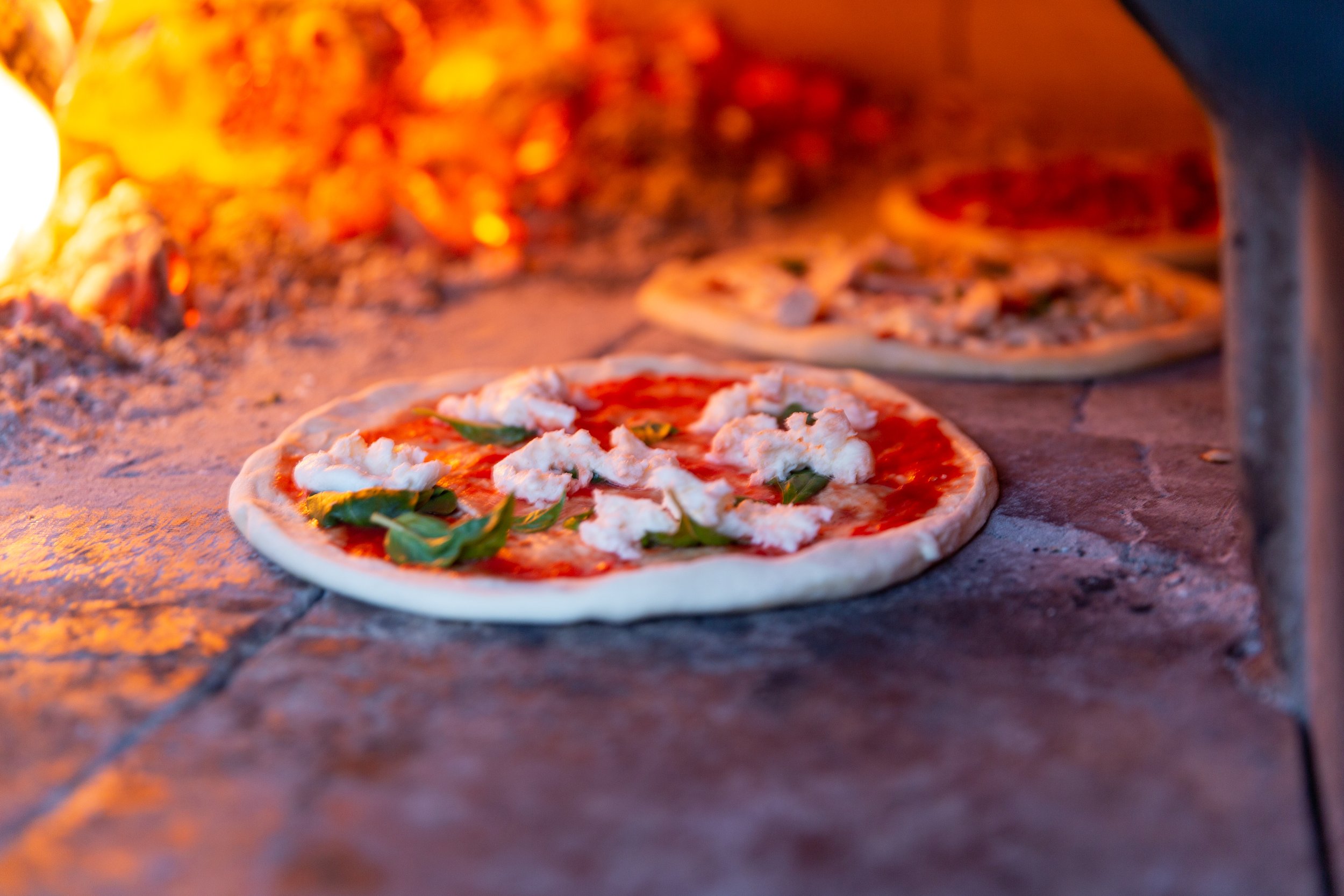 Bring your guests together over something everyone loves: incredible, fresh, wood-fired pizza — made on-site in our olive-wood ovens and served piping hot throughout your event.